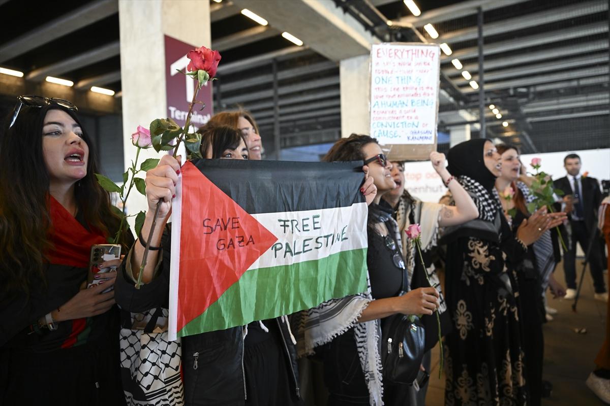 Berlin’de İsrail’in sınır dışı ettiği Madleen gemisindeki aktivistleri karşılayan destekçiler, 12 Haziran 2025 - (Anadolu Ajansı)