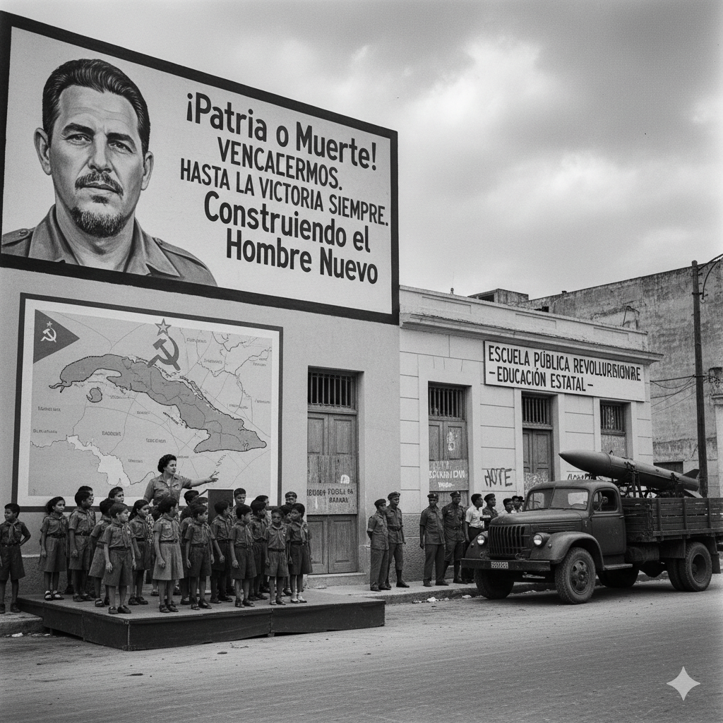 1959’da Fidel Castro’nun önderliğinde gerçekleşen Küba Devrimi, adanın toplumsal, ekonomik ve siyasal yapısını değiştirdi.【8】 Devrimin ardından Küba, Marksist-Leninist ideolojiye dayalı bir devlet sistemine yöneldi. Castro yönetimi, özel mülkiyeti sınırlandıran, toprak reformlarıyla büyük arazileri kamulaştıran ve özel sektör işletmelerini devletleştiren ekonomik bir politika izlemeye başladı. Aynı zamanda ülke genelindeki Katolik ve özel okullar kapatıldı; eğitim müfredatı tamamen devlet denetimine alındı.