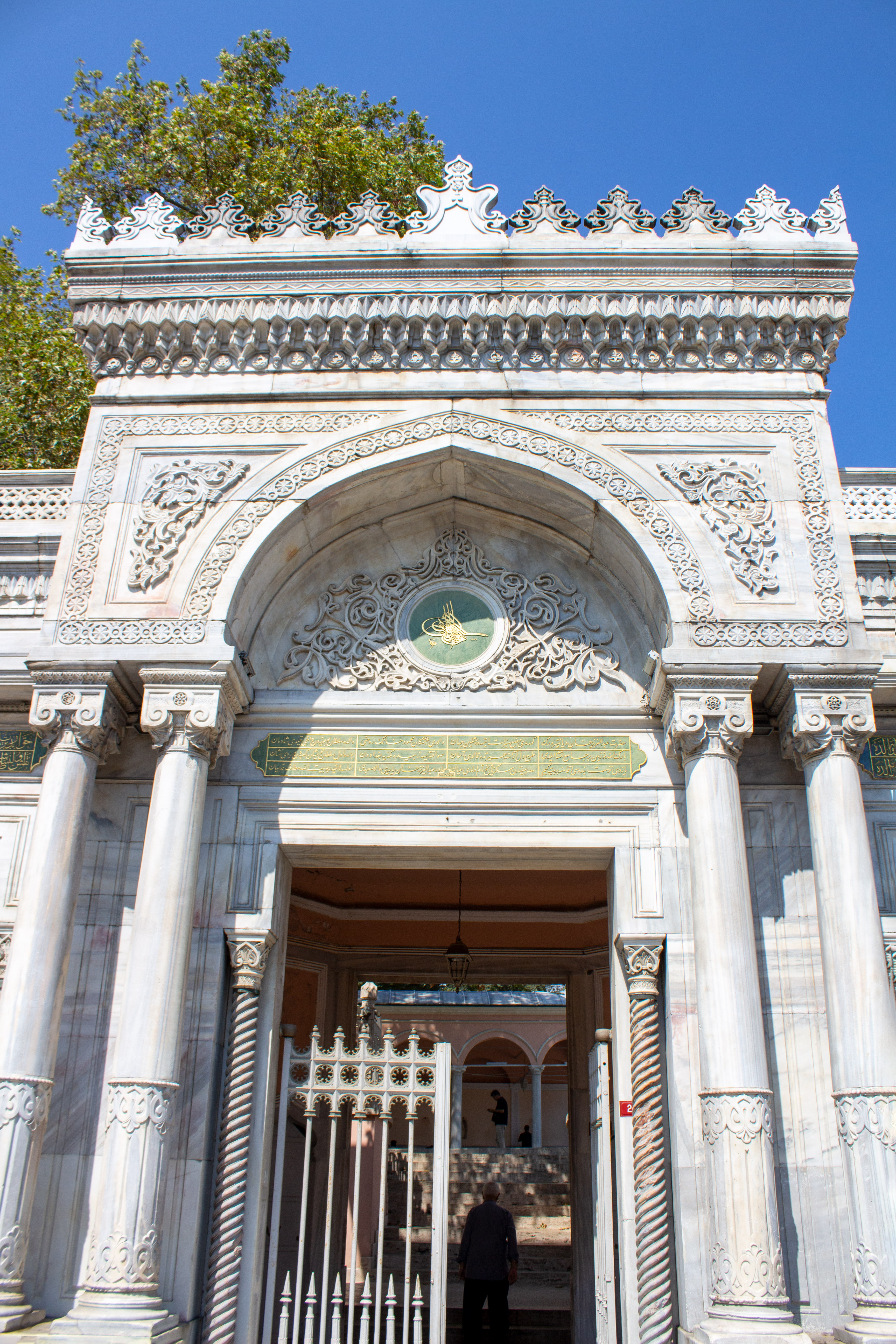 Avluya üç giriş kapısıyla ulaşılır. Bunlar doğu, batı ve kuzey kapılarıdır. Batı kapısı Abdülaziz'in tuğrasını taşır ve bitkisel kabartmalarla zenginleştirilmiştir. Cephe pencereleri yüksek sivri kemerlerle oluşmuş, gotik etkili taş şebekelerle doludur.