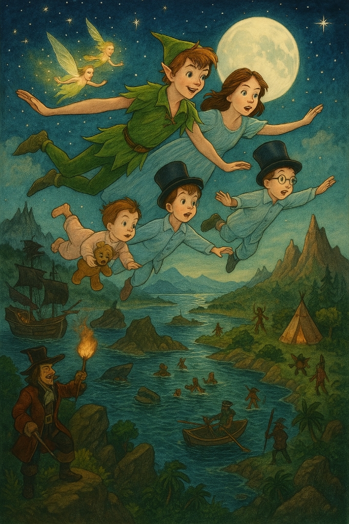 Peter Pan ve Çocuklar (Yapay Zeka Tarafından Oluşturulmuştur.)