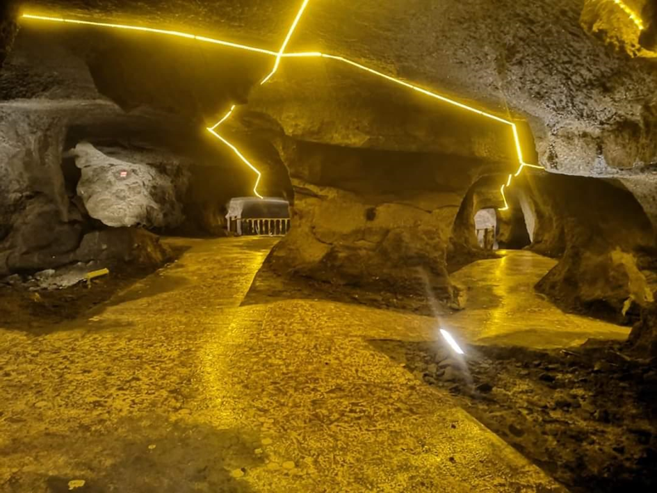 Tamamı insan eliyle oyularak meydana gelen mağaranın iç yapısı, girişte iki büyük mekân ve bunların ardında uzanan çok sayıda tünelden oluşur. Mağara içinde çeşitli kuyular ile küçük göller yer almaktadır. Bu yapısıyla mağara, hem işlevsel taş çıkarma alanı hem de kompleks bir yer altı yapısı görünümü sunmaktadır.