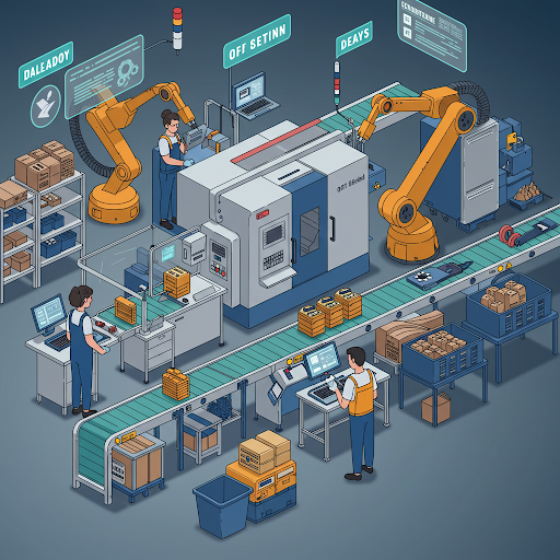 Otonom Üretim Hattı Genel Görünüm (Yapay Zeka Tarafından Oluşturulmuştur)