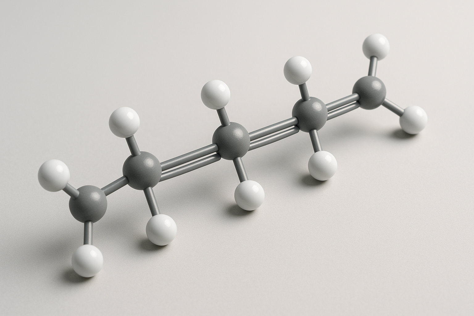 Poliasetilenin Polimer Zincirinin Bir Kesitinin Top ve Çubuk Modeli (Yapay Zeka ile Oluşturulmuştur)