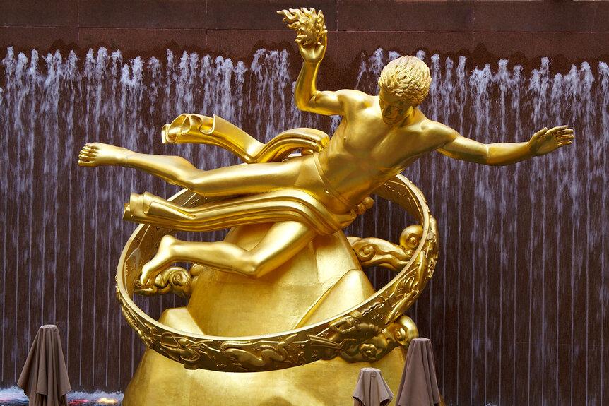 Gilded cast bronze sculpture of Prometheus outside Rockefeller Plaza in New York