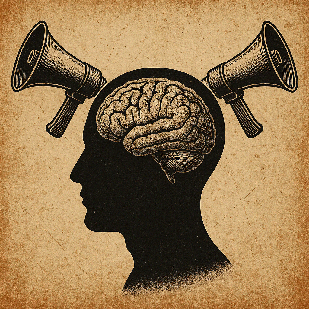 Psikolojik savaşın birey üzerindeki etkisi temsil eden bir görsel. (Yapay zeka ile oluşturulmuştur.)