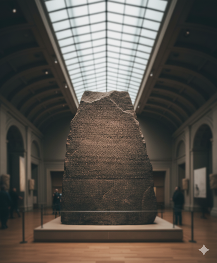 Rosetta Taşı Temsili (Yapay Zeka ile Oluşturulmuştur)