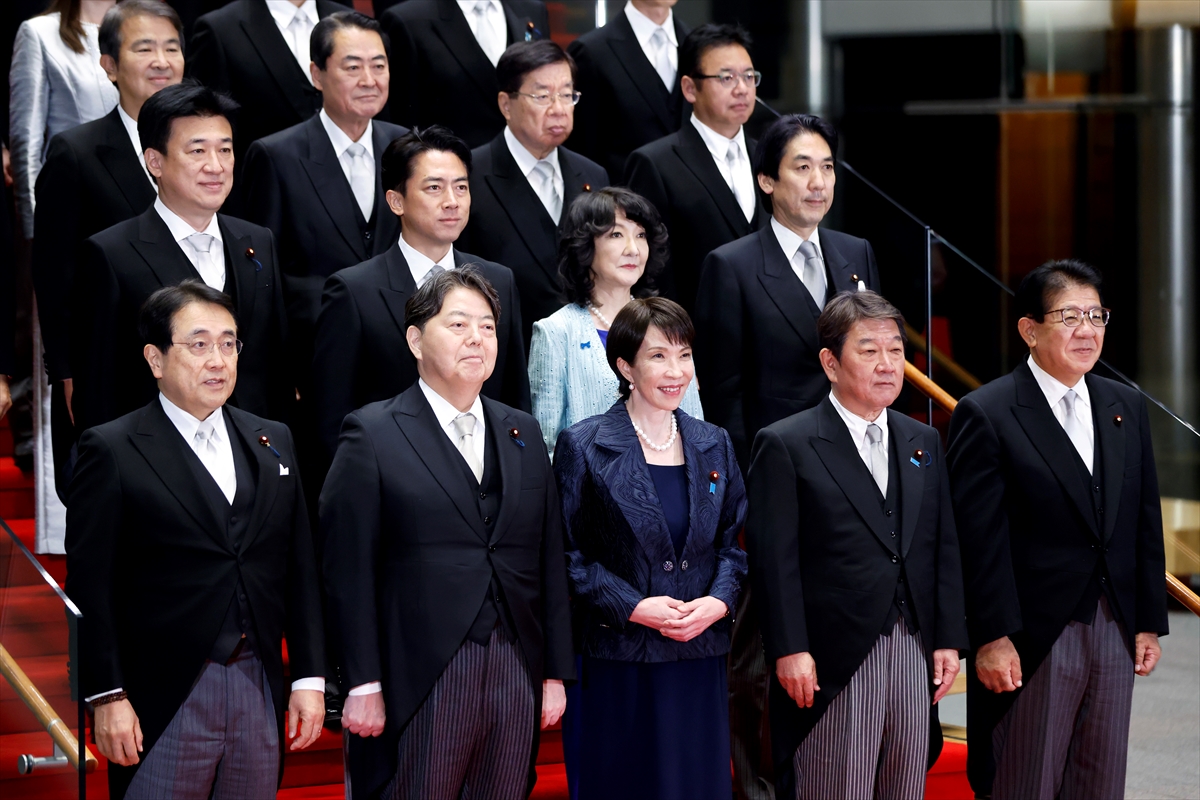Japonya’nın ilk kadın Başbakanı Sanae Takaichi (ortada), Tokyo’daki Başbakanlık Ofisi’nde yeni kabine üyeleriyle birlikte, 21 Ekim 2025 - (Anadolu Ajansı)