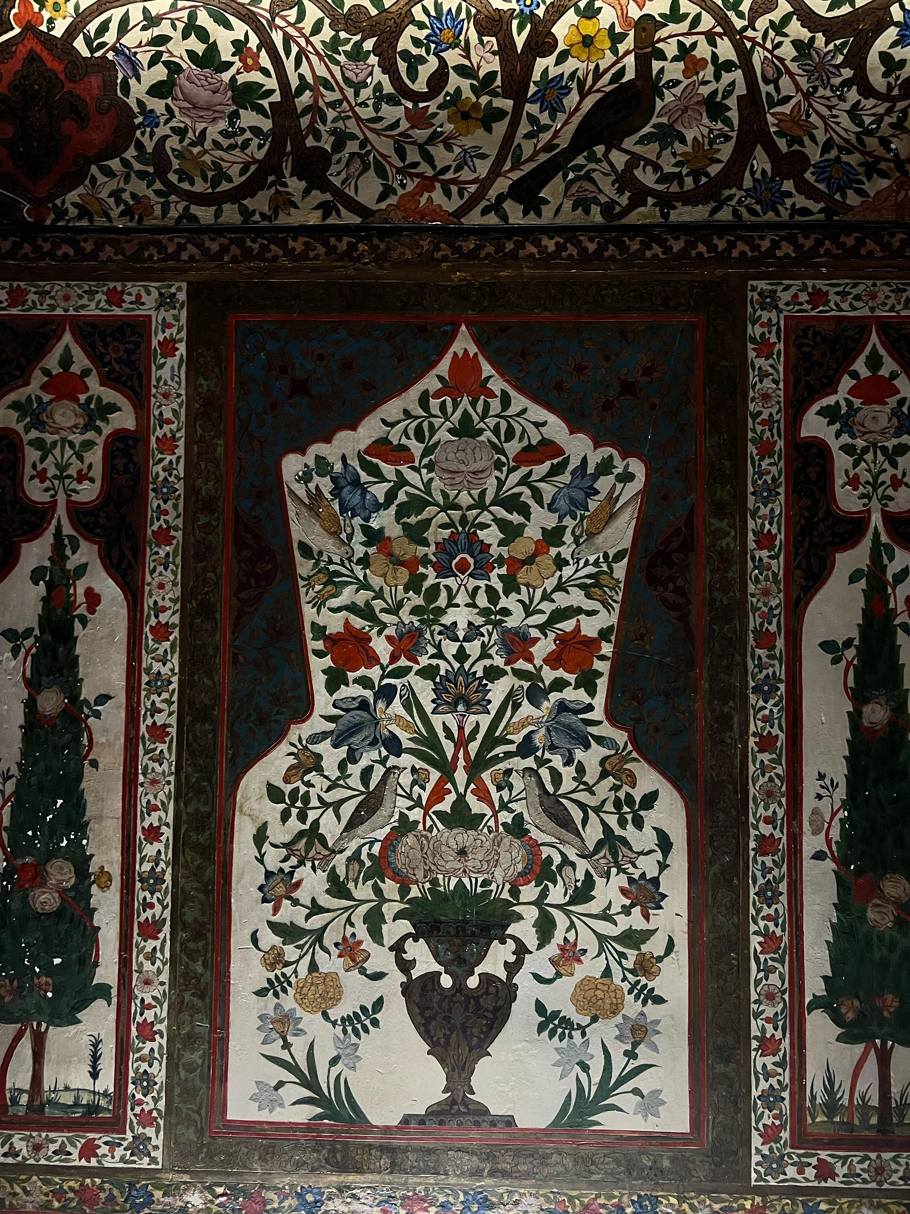 Hanın Şahsi İş Otağı: Fantastik figürlerin yoğun olduğu bu odada, papağan, nar, üzüm, ejderha ve güneş yüzlü kadın gibi sembolik öğeler dikkat çeker.