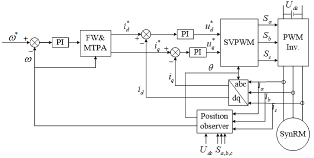 Genel olarak maksimum moment kontrolü (MTPA stratejisi kullanılır. Buna göre, farklı hız ve yük durumlarında akım vektörü ve d-ekseni arasındaki elektriksel açı, maksimum momenti vermesi amacıyla 45° olarak sabit tutulur. Bu kontrol yapısının uygulanması için rotor konum ve hız bilgi kullanılır. Maksimum momenti elde etmek için motordan elde edilen akım, hız ve konum bilgisi, talep edilen referans d ve q ekseni akımlarıyla gerekli matematiksel hesaplardan geçirilir. Hesaplar sonucunda motor statorundaki çok fazlı AC güç, çeşitli yarı iletken yapılarıyla kontrol edilir.