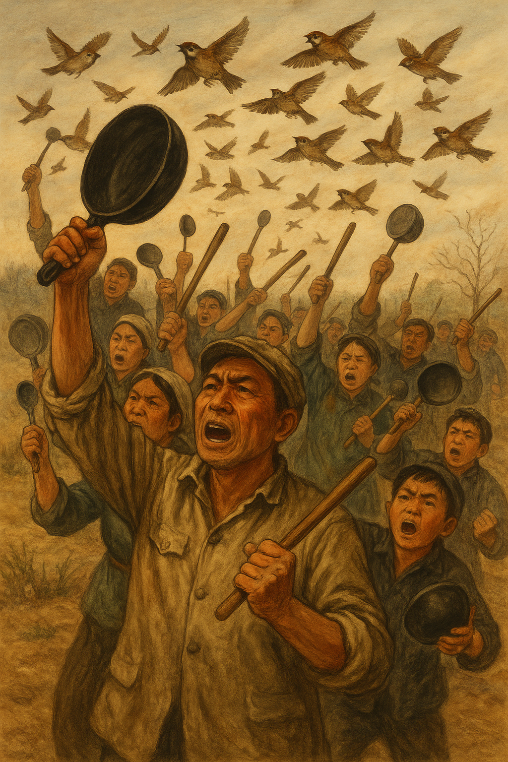Serçe Katliamı Yapan Köylüleri Temsil Eden Görsel (Yapay Zekâ ile Oluşturulmuştur)