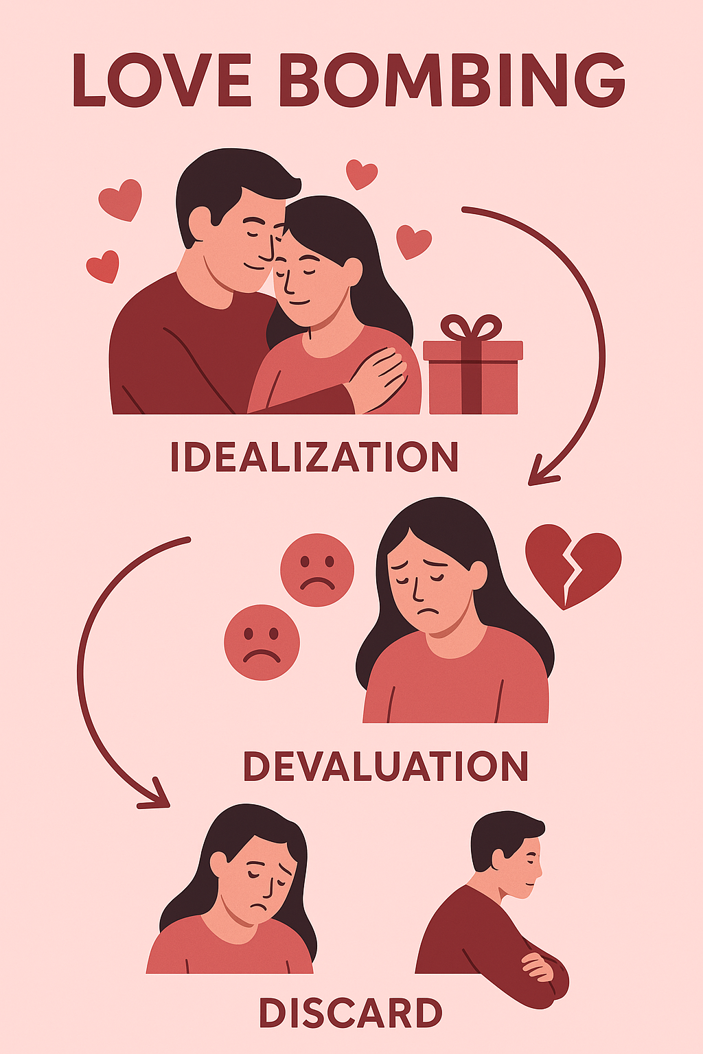Love bombing; bir kişinin karşısındakine aşırı sevgi, ilgi, övgü ve hediye göstererek onu hızla etkisi altına almaya çalıştığı bir manipülasyon biçimidir. Bu davranışlar genellikle ilişki başlarında görülür ve karşı tarafa “rüya gibi bir ilişki” yaşatılır. Ancak bu yoğun ilginin arkasında çoğu zaman kontrol kurma ve bağımlı hale getirme amacı yatar.