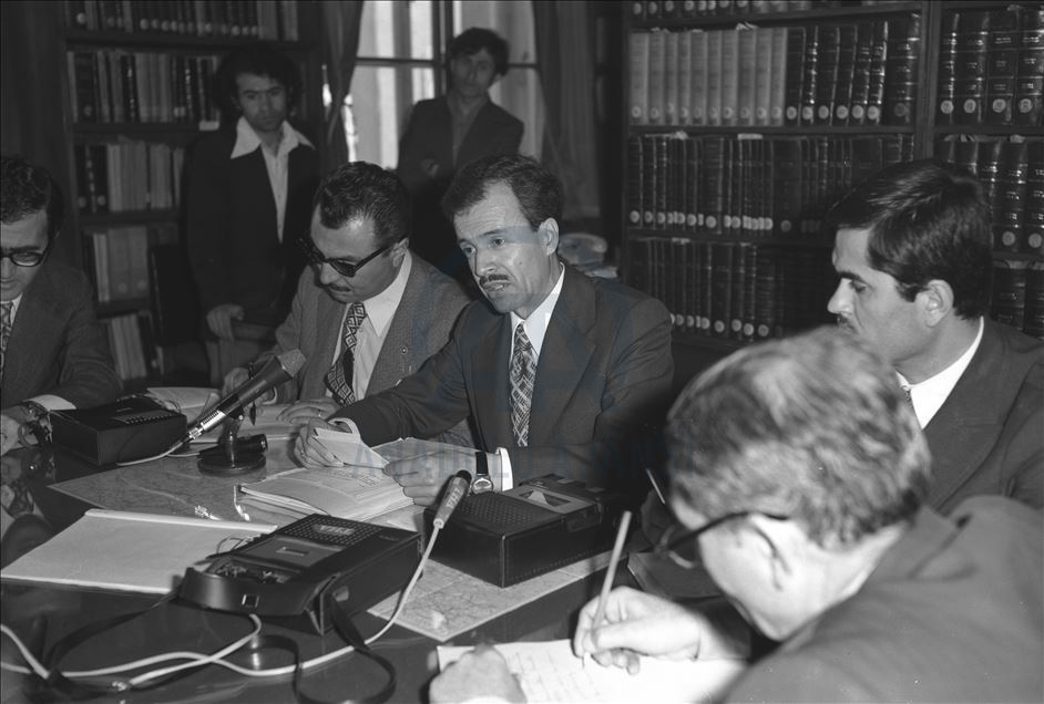 Dönemin Adalet Bakanı Şevket Kazan, 30 Nisan 1974'de basın toplantısı düzenledi. ( AA Arşivi - Anadolu Ajansı )