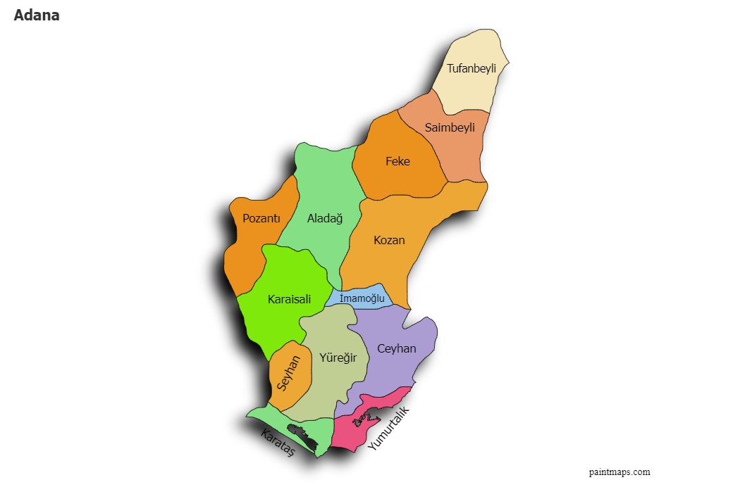 Seyhan ilçesi ve komşu ilçeleri (Kaynak: Paintmaps)