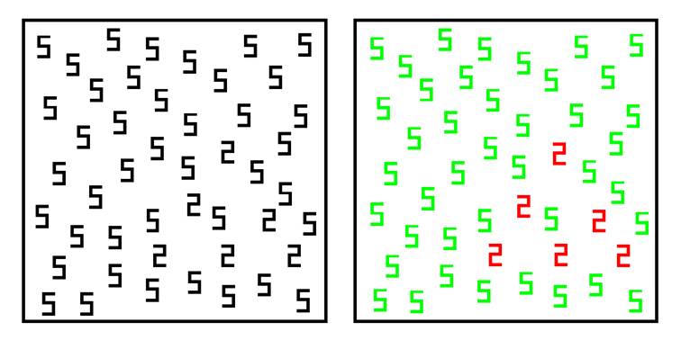 Grafem-Renk sinestezisine sahip biri karmaşık görsellerde farklı ifadeleri direkt algılayabilir (Ramachandran ve Hubbard, 2001).
