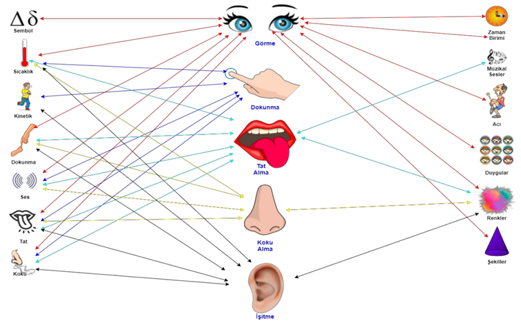 - Tat ve Koku Sinestezisi: Renklerin ya da müziğin tat ya da koku olarak algılanması (Ipser v.d., 2020; Sollberger, 2013).