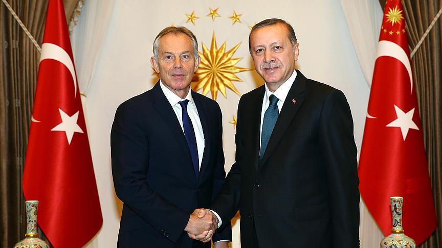 Cumhurbaşkanı Erdoğan ve Eski İngiltere Başbakanı Tony Blair (Anadolu Ajansı)