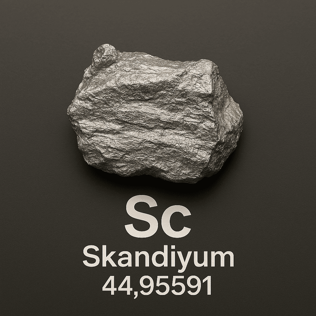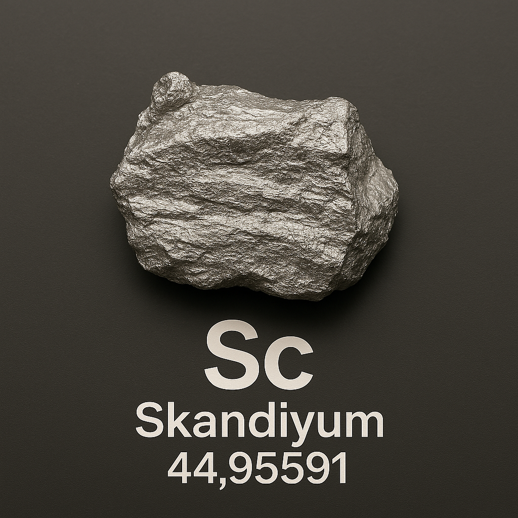 Skandiyum (Sc), periyodik tablonun 3. grubunda yer alan, kimyasal özellikleri bakımından hem geçiş metalleri hem de nadir toprak elementleriyle benzerlik gösteren bir elementtir. Doğada düşük bollukta bulunması, saflaştırılmasının zorluğu ve stratejik kullanım alanları nedeniyle yüksek ekonomik değere sahiptir. Hafifliği, yüksek mukavemeti ve teknolojik uygulamalardaki kritik rolü sayesinde havacılık, savunma ve enerji sektörlerinde önemli bir yere sahiptir.