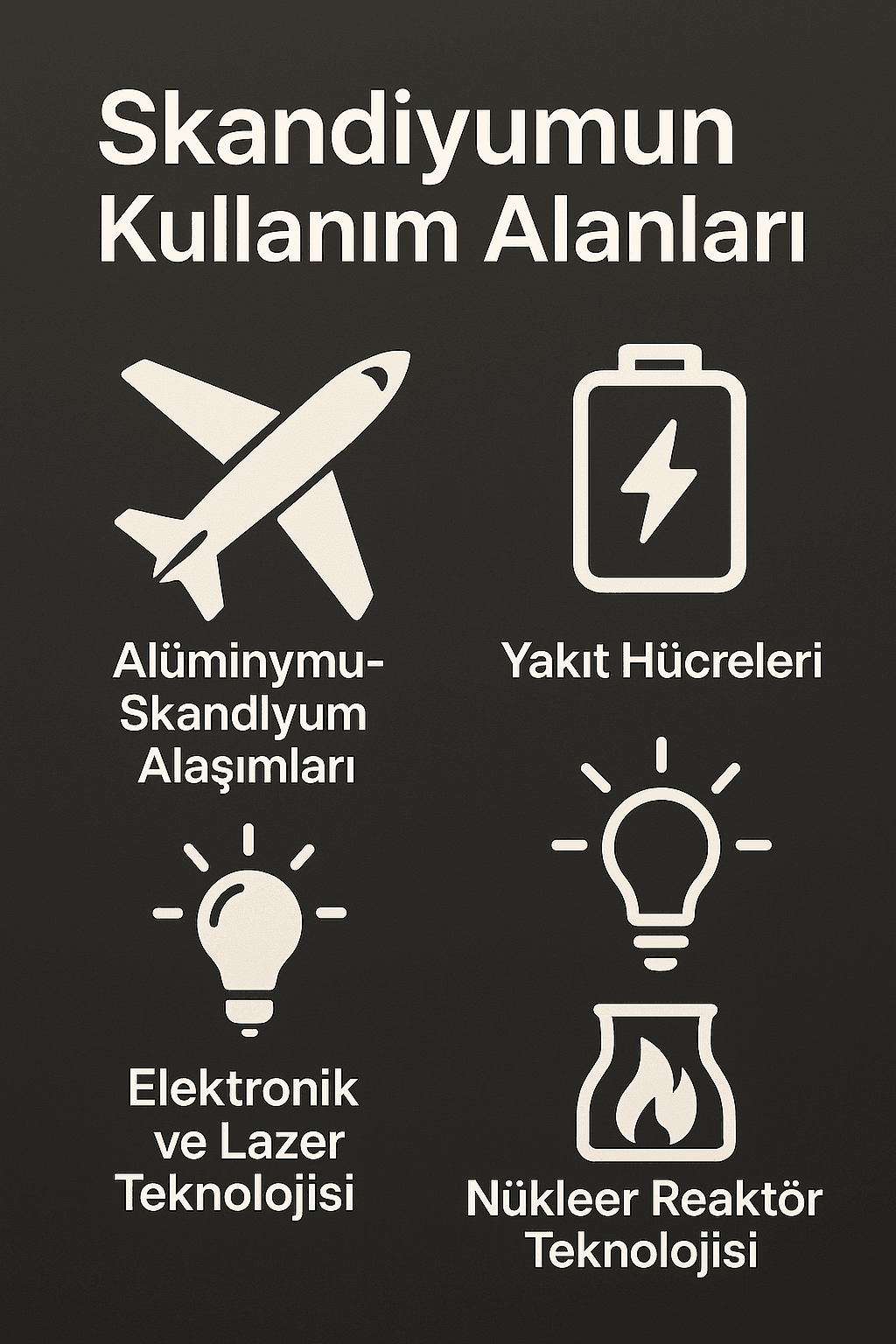 Skandiyum Elementinin Kullanım Alanları (Yapay Zeka ile Oluşturulmuştur)