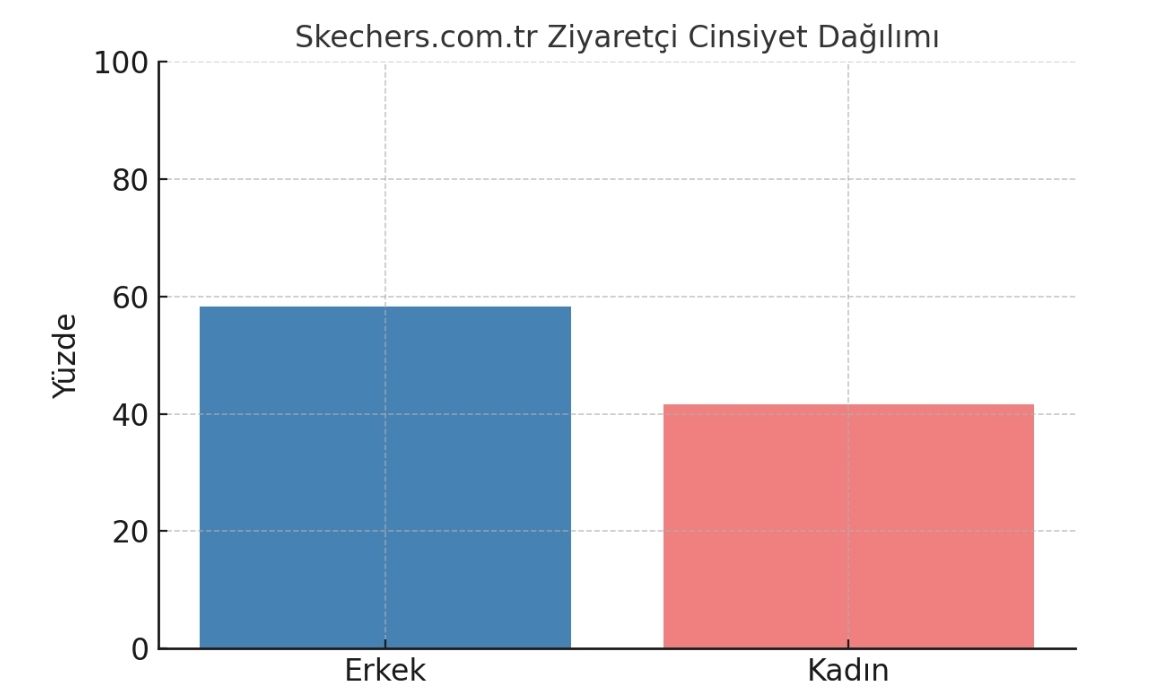 Skechers’ın Türkiye’deki resmi web sitesi olan skechers.com.tr’nin Şubat 2025 verilerine göre, ziyaretçilerin en büyük yaş grubu ise 25-34 yaş aralığındadır. Bu veriler, markanın genç yetişkin erkekler arasında daha tercih edildiğini göstermektedir. Ayrıca, site ziyaretçileri moda ve giyim kategorisine ilgi göstermekte, bu da Skechers’ın yaşam tarzı odaklı ürünlerinin hedef kitlesiyle örtüştüğünü ortaya koymaktadır.