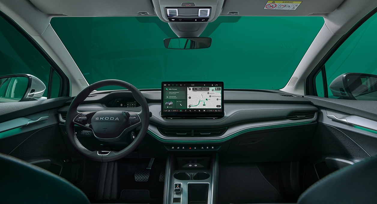 Škoda Elroq, markanın dijitalleşme vizyonunu destekleyen bir iç tasarıma sahiptir. Araç içerisinde minimal tuş takımı ve dijital ağırlıklı bir kontrol yapısı benimsenmiştir.