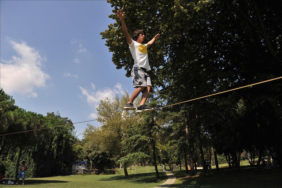 - Highline: Yüksek irtifalarda yapılan slackline türüdür. Emniyet halatı ve koruyucu donanım gerektirir.