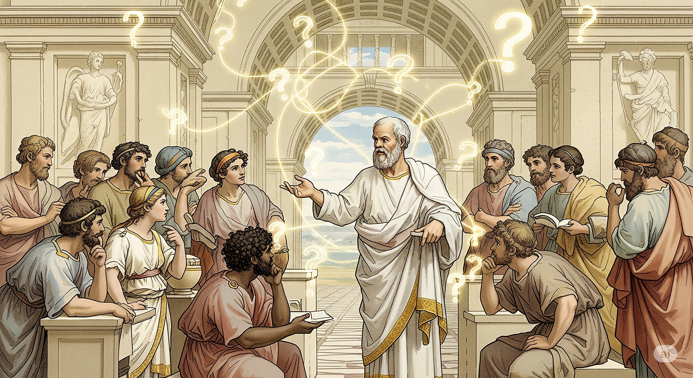 Sokratik Yöntem: Bilgiyi Sorularla Ortaya Çıkarma Sanatı (Yapay Zeka Tarafından Oluşturulmuştur)