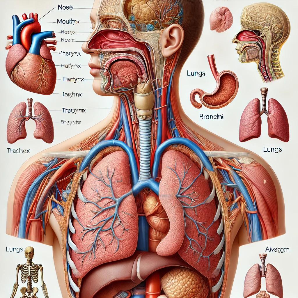 Akciğerler: Akciğerler, oksijenin kana alındığı ve karbondioksitin dışarı atıldığı ana organlardır. Solunum hareketleri, diyafram ve kaburgalar arasındaki kasların yardımıyla gerçekleşir.