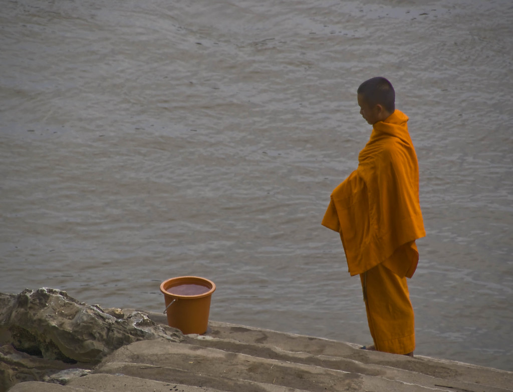 Songkran Festivali Sırasında Dini Ritüellerini Gerçekleştiren Bir Budist (Flickr)