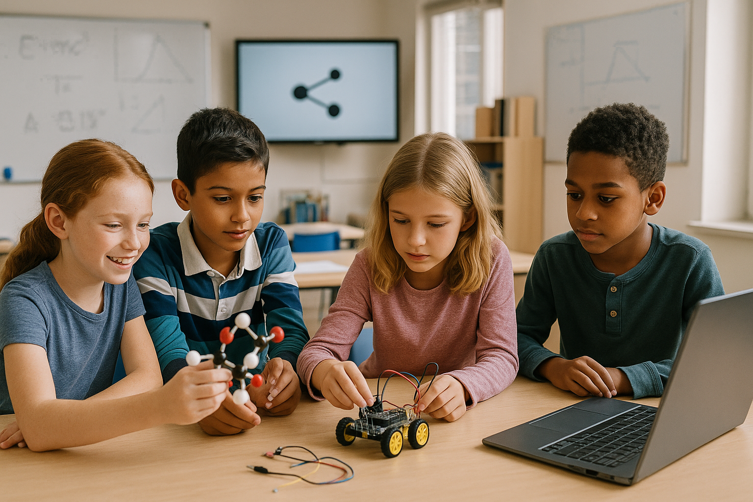 STEM eğitiminde çocuklar. (Yapay zeka ile oluşturulmuştur.)