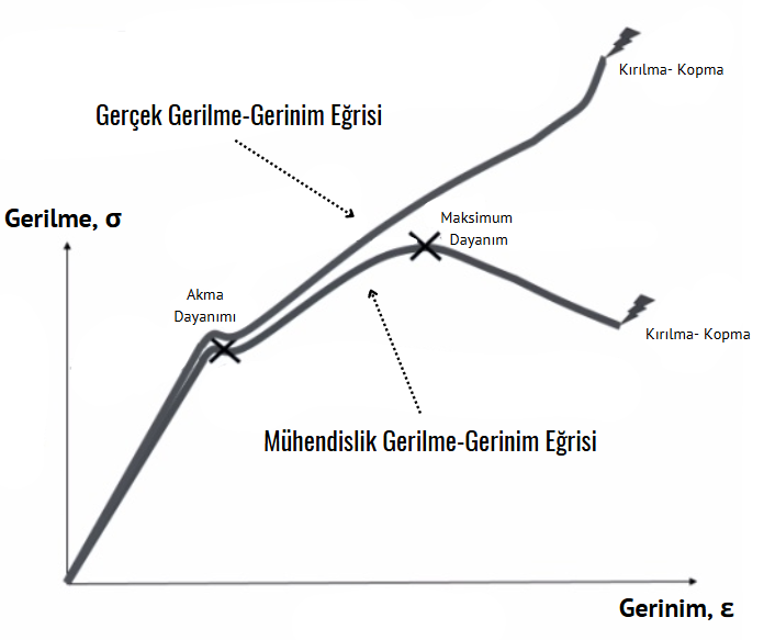 Gerçek ve Mühendislik Gerilme- Gerinim Grafikleri Temsili Gösterimi (Muzaffer Yalçın)