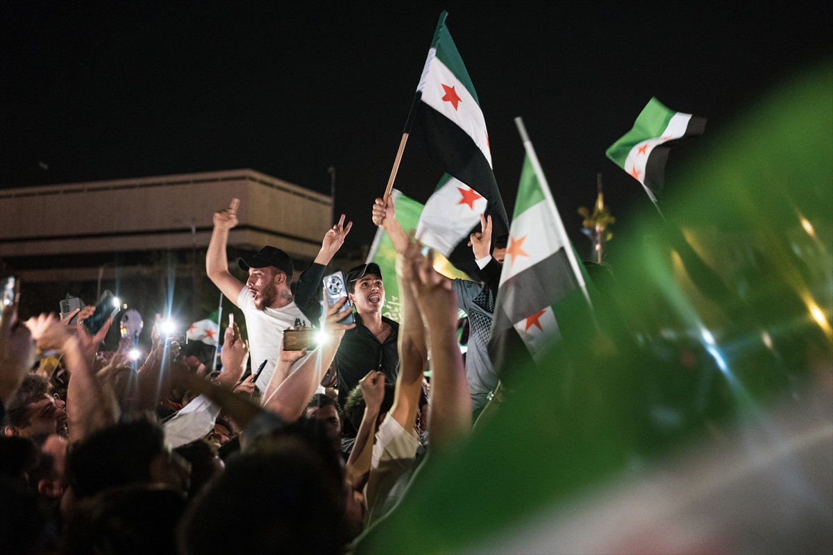 Donald Trump'ın açıklamasının ardından başkent Şam'da düzenlenen kutlama etkinlikleri, 13 Mayıs 2025. (Anadolu Ajansı)