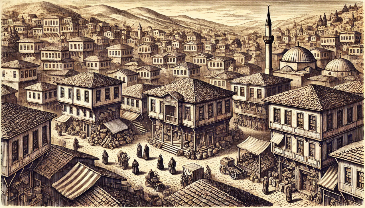 19. Yüzyılda Balkanlarda Temsili Bir Osmanlı Şehri Tasviri (Yapay Zeka İle Oluşturulmuştur)