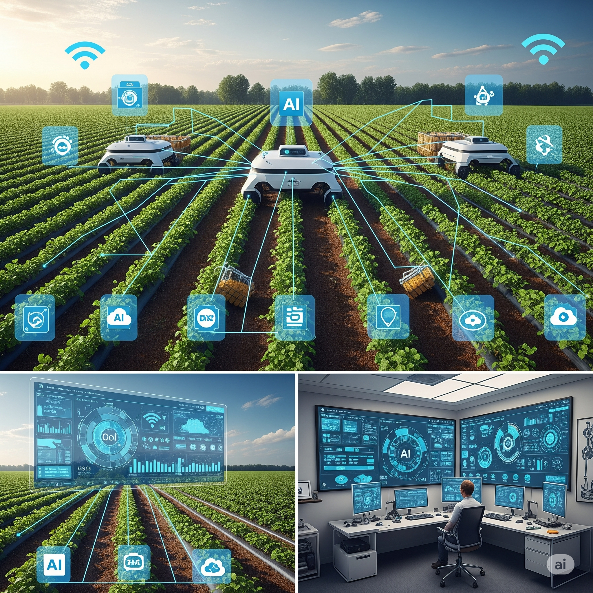 - Otonom Sistemler ve Robotik: İnsansız hava araçları (dronlar) ve tarım robotları, ekim, ilaçlama, hasat, gözlem ve sulama gibi faaliyetlerde insan müdahalesini minimize ederek verimliliği ve hassasiyeti artırır. Dronlar, geniş arazilerin hızlı bir şekilde taranması ve bitki sağlığı haritalarının oluşturulmasında etkinken, robotlar hassas ekim ve hedefli ilaçlama gibi görevlerde kullanılır.