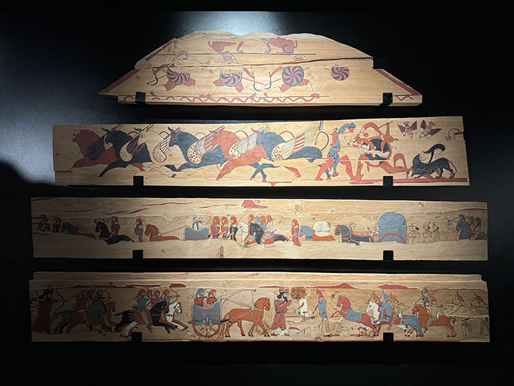 Bu figürler, dönemin sosyal ve kültürel yaşamını anlamada önemli ipuçları sunmaktadır. Ahşap zemin üzerine yapılan bu resimler, antik çağda ahşap resim sanatının nadir örneklerinden biridir ve günümüze ulaşabilmiş olmaları, bu buluntunun değerini daha da artırmaktadır.