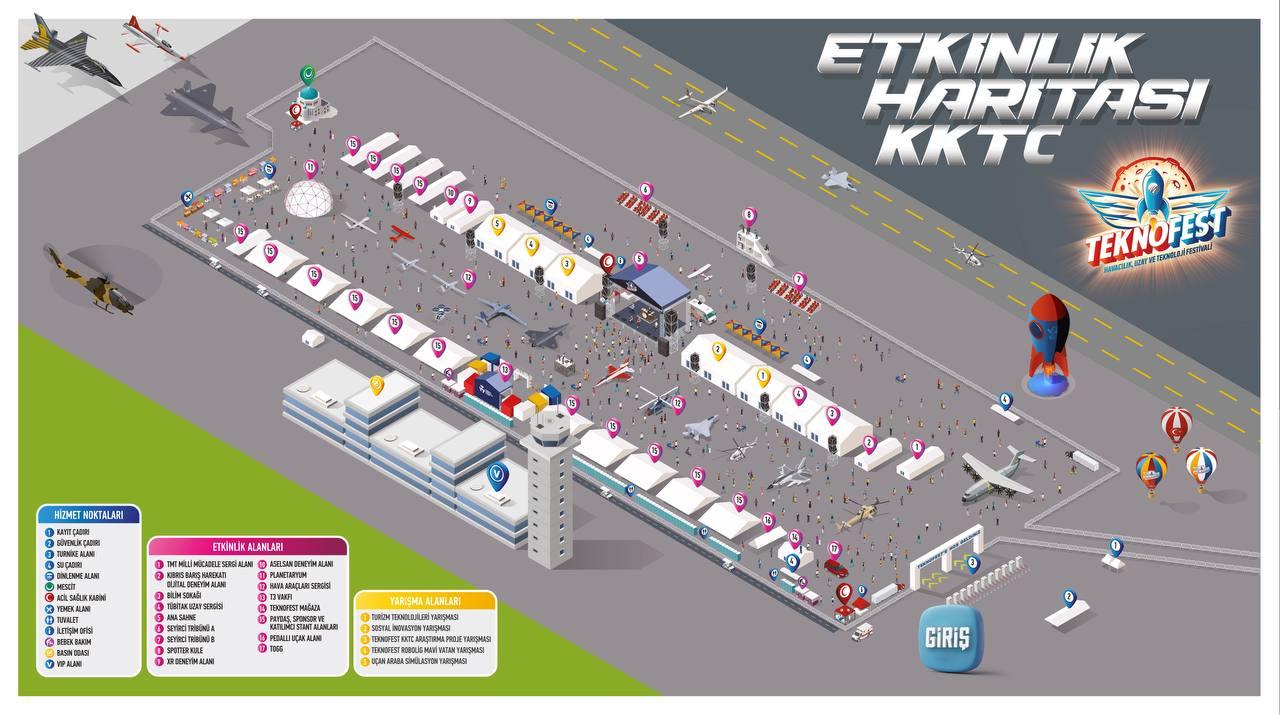 TEKNOFEST KKTC 2025, Lefkoşa’da yer alan eski Ercan Havalimanı sahasında gerçekleştirilmiştir. Festival alanı yaklaşık 100.000 metrekarelik bir yüzölçüme sahiptir. Alanda yarışma platformları, gösteri pistleri, sahne sistemleri, bilimsel etkinlik alanları, stant kümeleri, simülasyon bölümleri ve ziyaretçi hizmet noktaları kurulmuştur.
