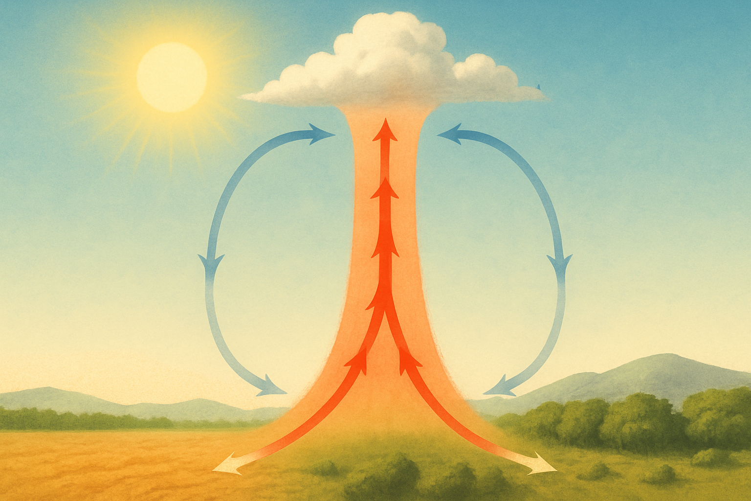 Termal Hava Akımı Oluşumu Tasviri (Yapay zeka ile oluşturulmuştur.)