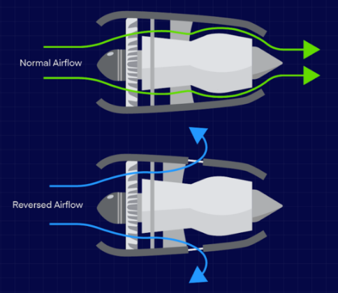 - Kısa pist operasyonları: Ters itme, kısa veya ıslak pistlerde güvenli iniş için gerekli durma mesafesinin elde edilmesinde yardımcı olur.
