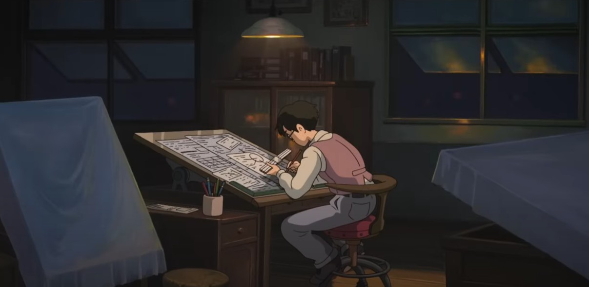 Jiro Horikoshi çizim yaparken (The Wind Rises)