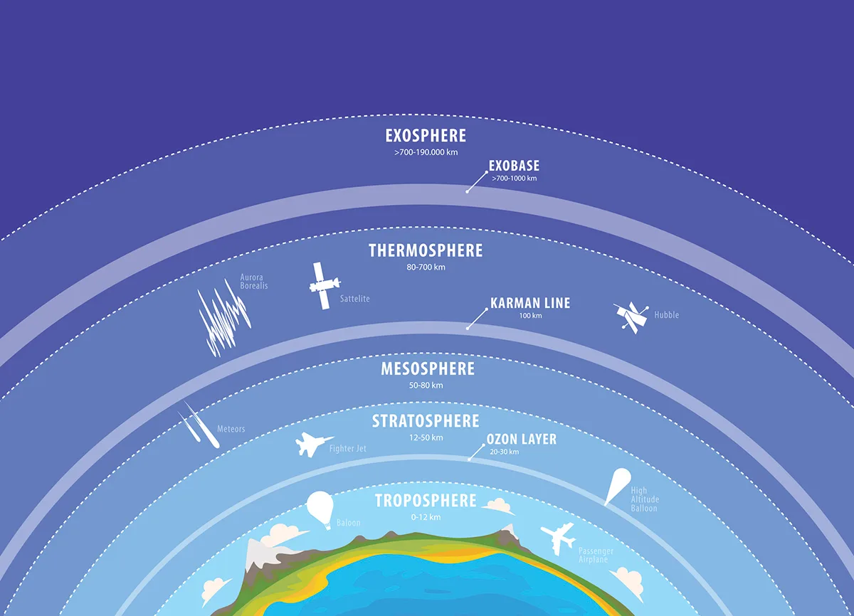 - Kármán Hattı (Kármán line): Uzayın sınırını tanımlamak için kullanılan ve 100 km irtifa olarak kabul edilen yükseklik çizgisi, onun adıyla anılır. Uzay ve atmosfer arasındaki geçişi fiziksel olarak tanımlayan bu eşik, bugün uzay uçuşlarının tanımında esas alınmaktadır. Theodore von Kármán tarafından 1960'larda önerilen ve uzayın başlangıcı olarak kabul edilen bir sınırdır. Bu hat, uçuş fiziğinin değiştiği noktayı temsil eder. Bu noktada, bir aracın kanatları tarafından üretilen aerodinamik kaldırma kuvveti (uçak veya helikopter gibi) artık yeterli destek sağlamaz. Bunun yerine, araç yüksekliğini atalet ve merkezkaç kuvveti (yörüngedeki bir uydu gibi) ile korur. Kármán Hattı'nın altında yörüngeye girmeye çalışan küçük bir uydu, hava molekülleriyle yoğun bir şekilde karşılaşır. Bu, sürtünmeye ve ısı oluşumuna yol açar; sonuç olarak uydu, bir tam yörüngeyi tamamlamadan yanabilir veya parçalanabilir. Kármán Hattı'nın üzerinde ise bir uydu, bu tür sorunlarla karşılaşmadan güvenli bir şekilde yörüngeye yerleşebilir. Kısacası, Kármán Hattı, atmosferin uçuş için yeterli desteği sağlayamayacağı ve uzay dinamiklerinin devreye girdiği sınırdır.