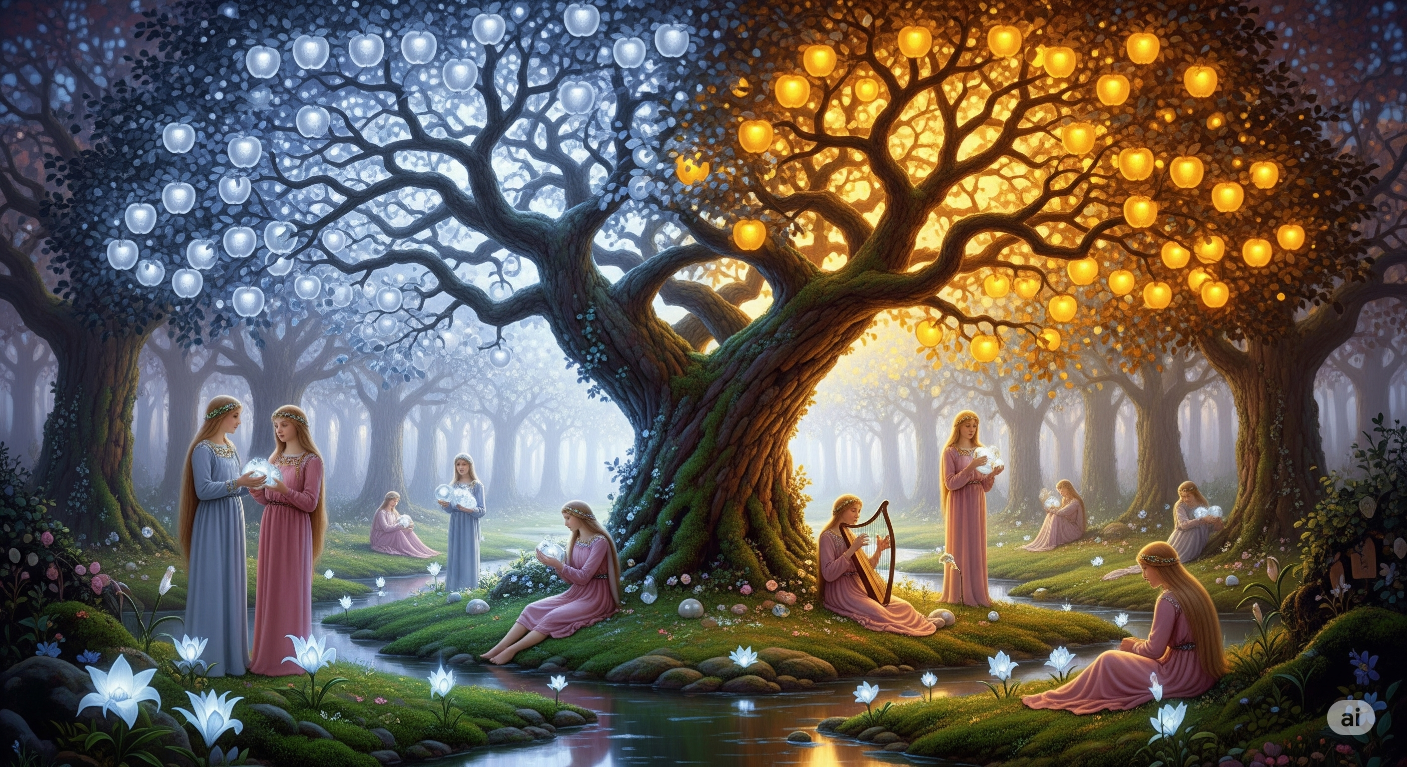 Tír Na NÓg'un Kalbindeki Kutsal Meyve Bahçesi ve Zamansız Yaşam (Yapay Zekâ ile Oluşturulmuştur)