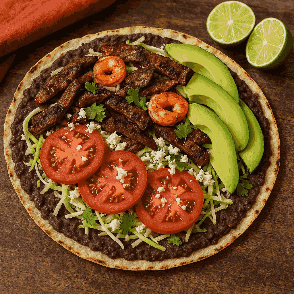 Tlayuda, geniş mısır tortillası üzerine çeşitli malzemelerin yerleştirilmesiyle hazırlanan geleneksel bir Oaxaca yemeğidir. Bu yemek, Oaxaca eyaletine özgü sokak mutfağı öğelerinden biri olup, nixtamalize edilmiş (kireç ile işlem görmüş) mısır unundan elde edilen büyük ve gevrek bir tortilla tabanına asiento (donmamış domuz yağı), siyah fasulye püresi ve yerel quesillo (Oaxaca peyniri) gibi bileşenler eklenerek sunulur. Hazırlanışında kullanılan mısır ve teknikler, yerel gastronomi ve kültürel bağlamı yansıtır.