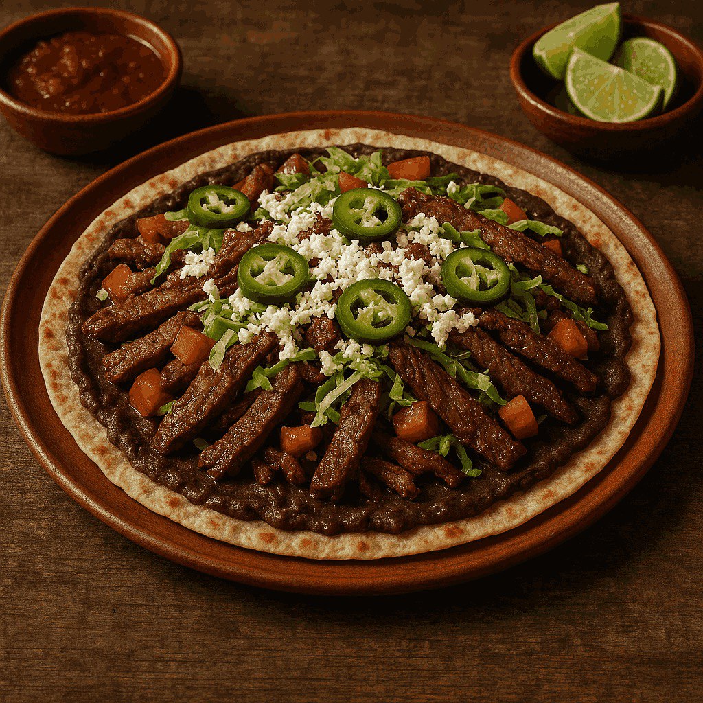 Pişirilen tortilla üzerine önce asiento ve refried (kızartılmış) siyah fasulye püresi sürülür. Ardından yerel quesillo gibi peynir türleri, çeşitli etler (örneğin tasajo, cecina veya chorizo), avocado, domates, marul ve salsa gibi ek malzemeler ilave edilir. Sunum biçimi açık yüzlü olabileceği gibi, bazen katlanarak da servis edilebilir.