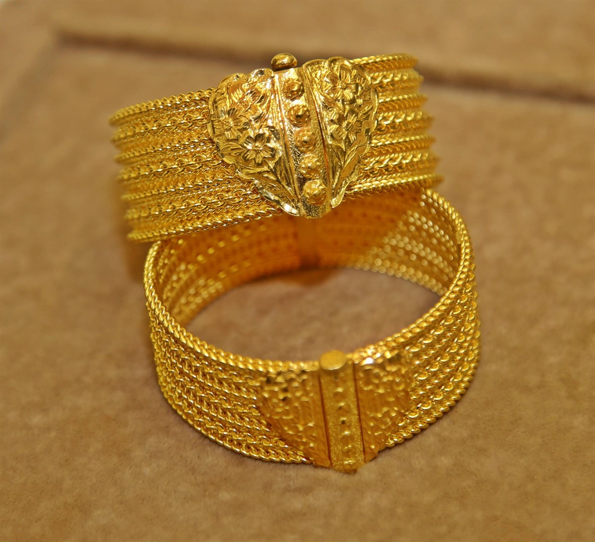 Bileziğin kilit kısmı kum döküm tekniğiyle hazırlanır ve bileziğin uçlarına kaynak yapılır. Tokalar birleştirildiğinde kalp formunu alır. Asit banyosu ve yaldız suyu ile yüzey temizlenip parlatılır. Ardından, elmas kalemle toka bölümü oyularak son form kazandırılır.