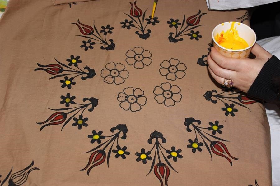 - Kalıp-kalem işi: Kalıpla kontur çizilir, iç bölgeler fırçayla renklendirilir.