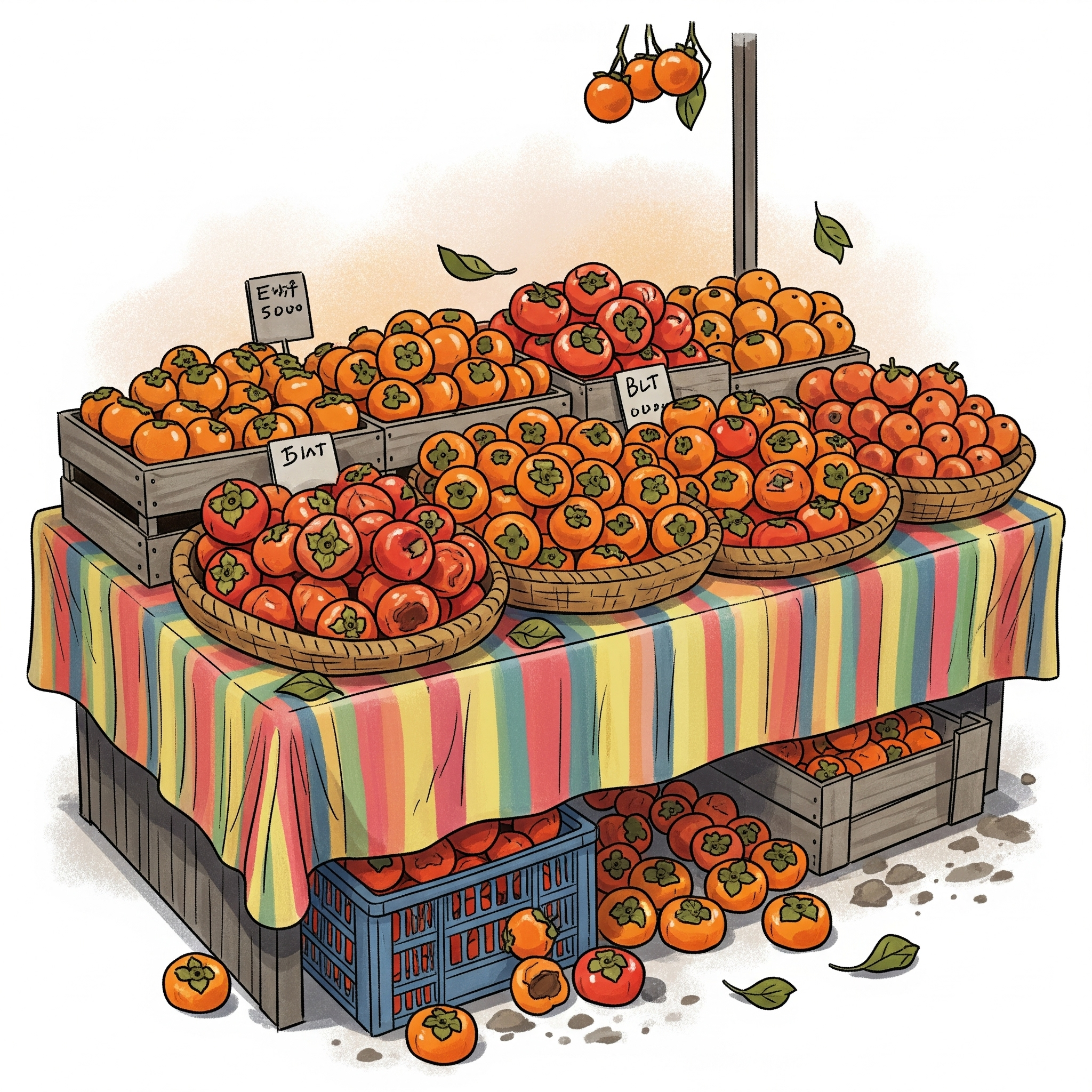 Pazar Tezgahında Yer Alan Trabzon Hurması İllütrasyonu.(YZ ile oluşturulmuştur.)