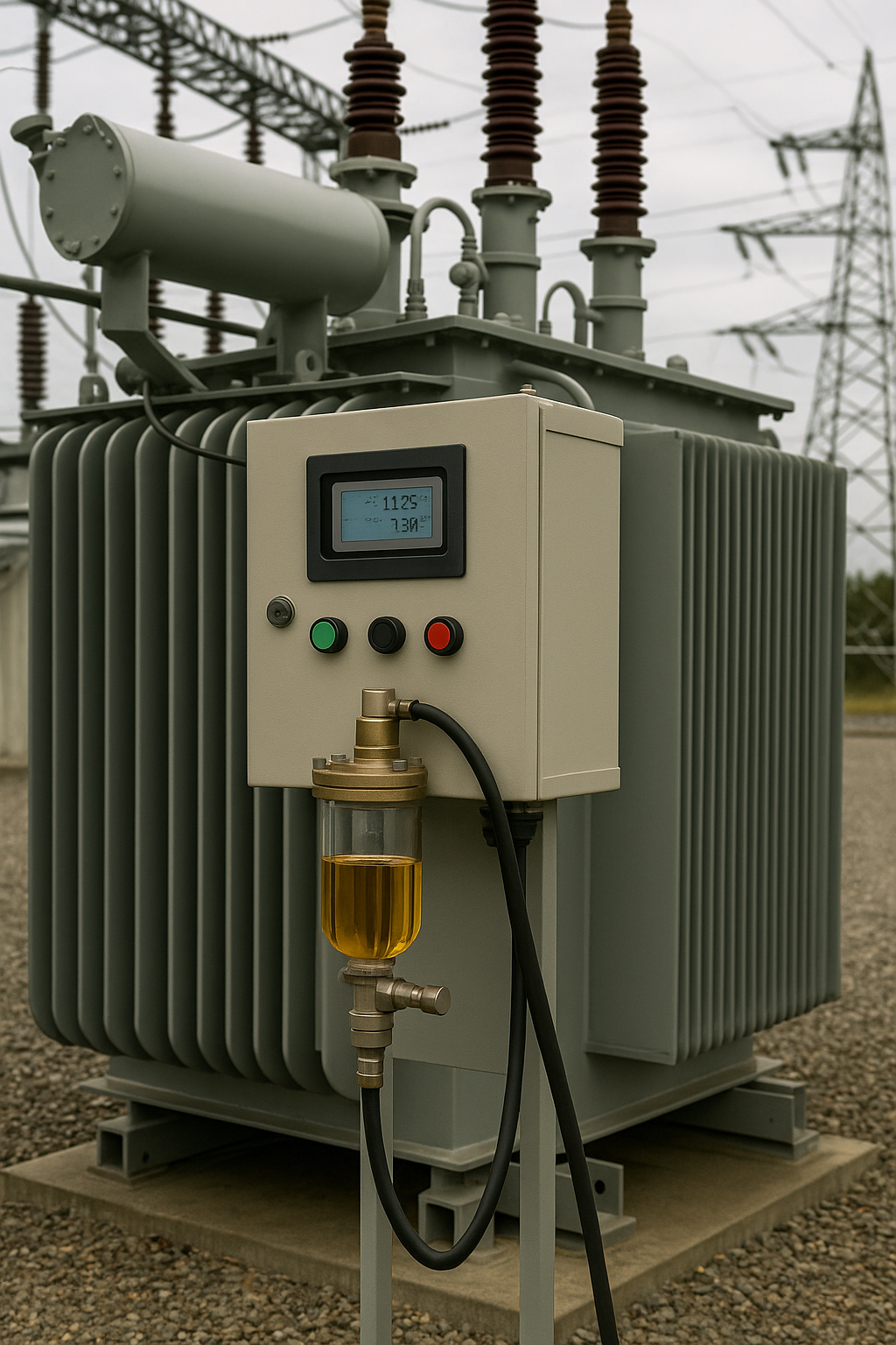 Bir Güç Transformatörünün Yağ İzleme Sistemi (Yapay Zeka Tarafından Oluşturulmuştur.)