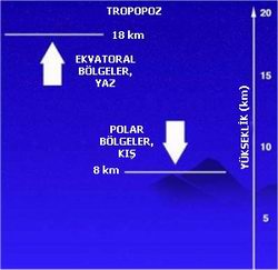 Ilıman kuşaklarda tropopoz yüksekliği yıl içinde belirgin dalgalanma gösterir. Yaz aylarında artan yüzey sıcaklıkları ve genişleyen hava kütlesi nedeniyle tropopoz yüksekliği 13–15 km’ye kadar çıkarken, kış aylarında 8–10 km seviyelerine kadar geriler. Bu değişim, ısıtma gradyanlarıyla bağlantılı olarak atmosferin kararlılık özelliklerini etkiler.
