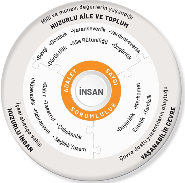Adalet, doğruluk, merhamet, sevgi, saygı, sorumluluk, tutumluluk ve temizlik gibi erdemler, öğretim programlarına entegre edilmiştir. Erdem-değer-eylem çerçeveleri, öğrencilerin bu değerleri içselleştirmesini ve günlük hayatlarında uygulamasını teşvik eder.