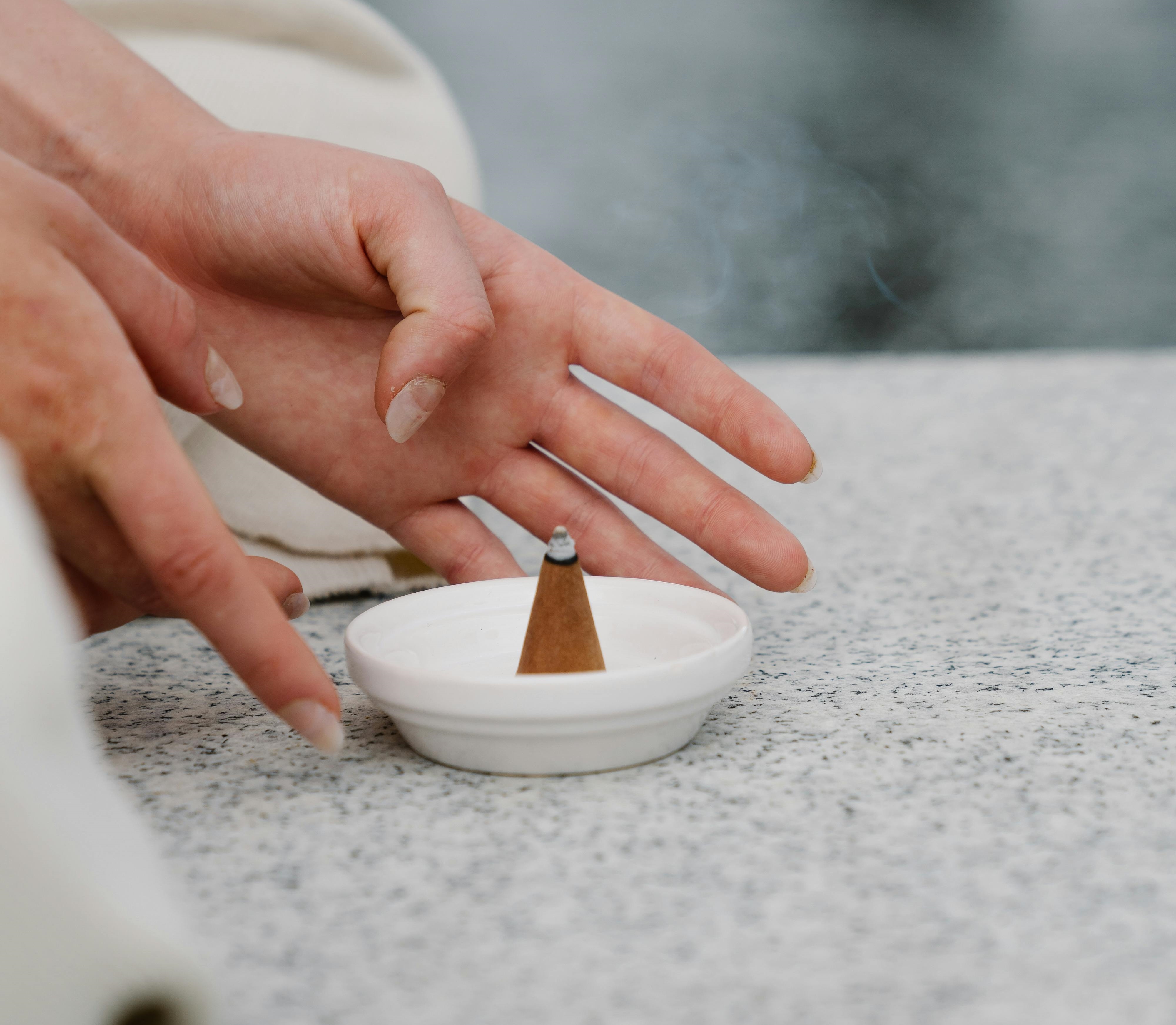 Meditasyon sırasında tütsü kullanımı (Photo By: Kaboompics.com, https://www.pexels.com/tr-tr/fotograf/kadin-mechul-bulaniklik-fluluk-4498360/)