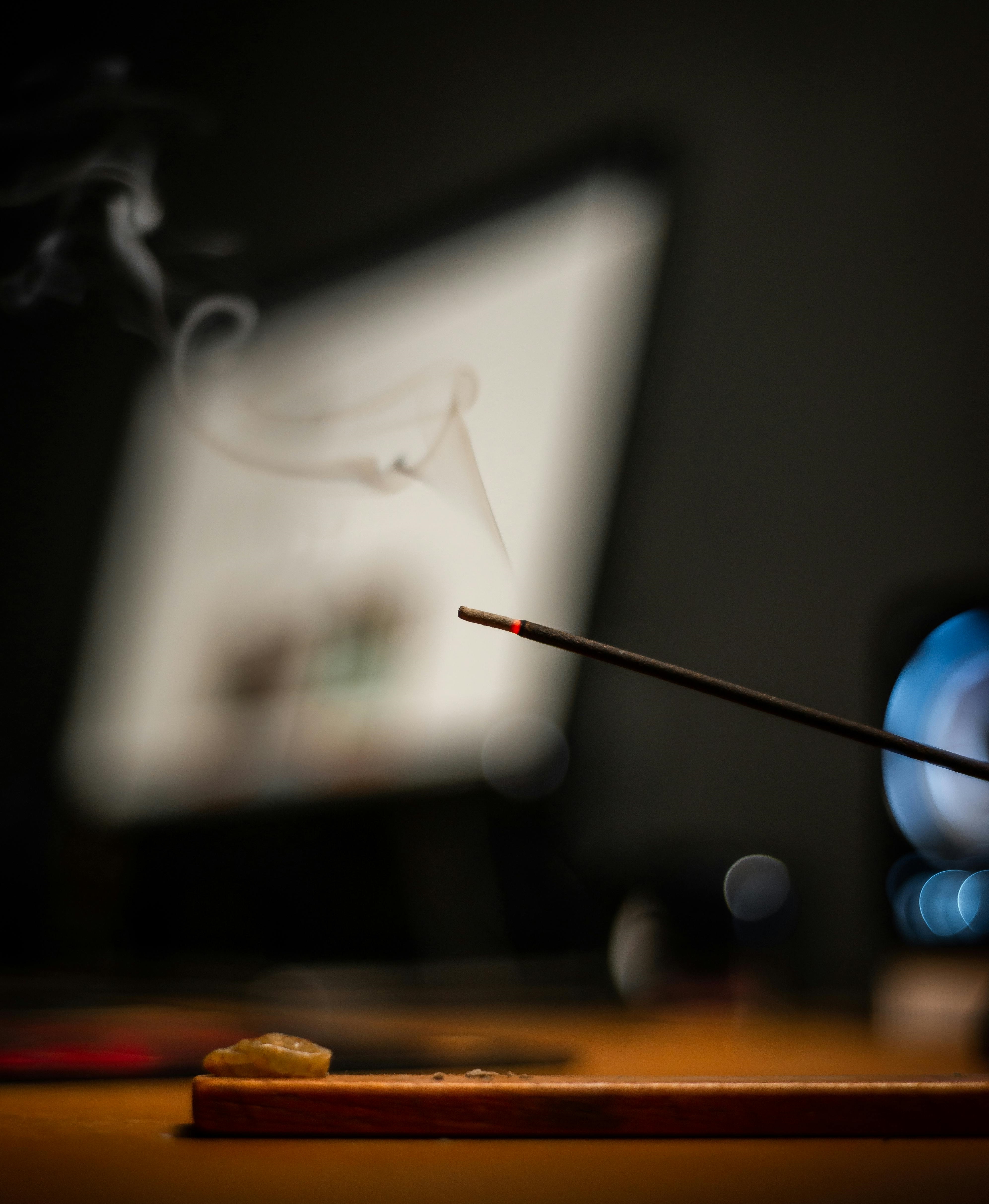 Çubuk tütsü (Fotografia Eles Dois, https://www.pexels.com/tr-tr/fotograf/tutsu-yanan-yanmak-yakmak-12369904/)